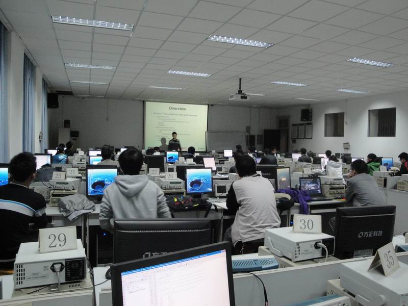 11月15日晚7点,由电信系承办的华中科技大学Xilinx-依元素科技FPGA电子设计大赛在南一楼东303实验室组织大赛培训及进展交流活动。