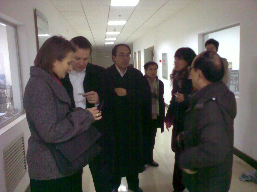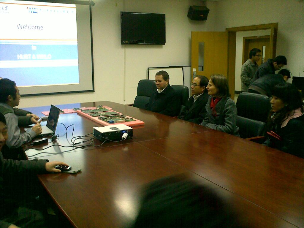 德国电信全球副总裁兼大中华区总裁黄辉等一行三人在电信系系副主任魏蛟龙教授陪同下,访问武汉光电国家实验室光通信与智能网络研究部,并与朱光喜教授等教师亲切会谈。