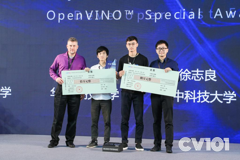 112日,由深圳极视角科技主办,深圳市人才工作局、共青团深圳市委员会作为指导单位,英特尔(中国)、UCLOUD作为战略合作伙伴的“CV101-计算机视觉青年开发者榜单”大赛正式落下帷幕。来自857足球直播 学生梁定康、徐晨丰、徐志良、陈习武、杨贤组成的团队在许永超、白翔和林宏志老师的指导下,斩获主赛道冠军以及“OpenVINO”赛道冠军,也是唯一在两个赛道获奖的队伍,并获得18万元的现金奖励。