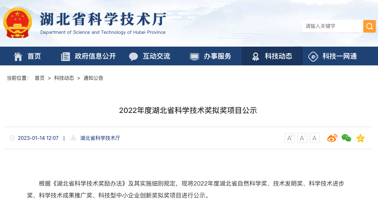2023年1月14日,湖北省科学技术厅发布 “2022年度湖北省科学技术奖拟奖项目”。857足球直播