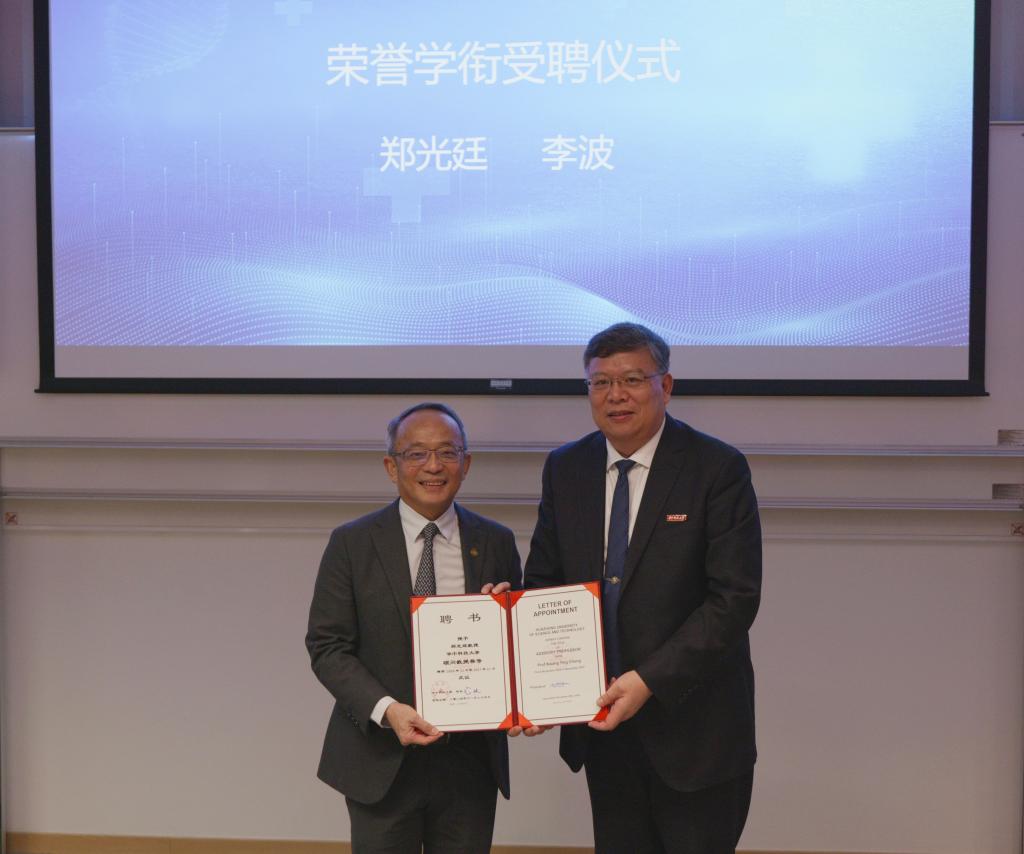 计算机科学与工程学系李波教授颁发我校顾问教授聘书;表示希望两位教授就相关领域学科发展和人才培养提出宝贵指导性意见,在此推动下,两校围绕创新型人才培养、高水平科研合作等方面产生更多标志性成果。