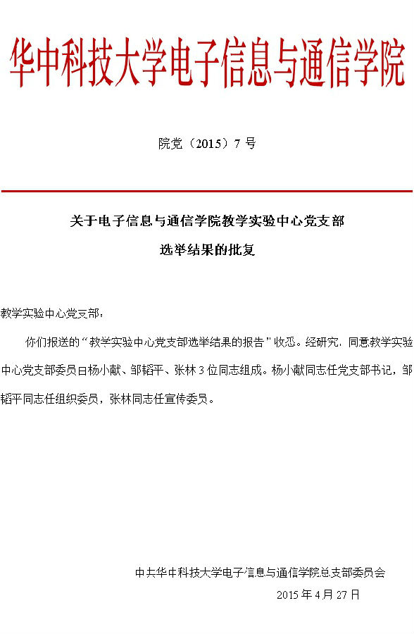 院党(2015)8号 关于857足球直播 电子工程系党支部选举结果的批复