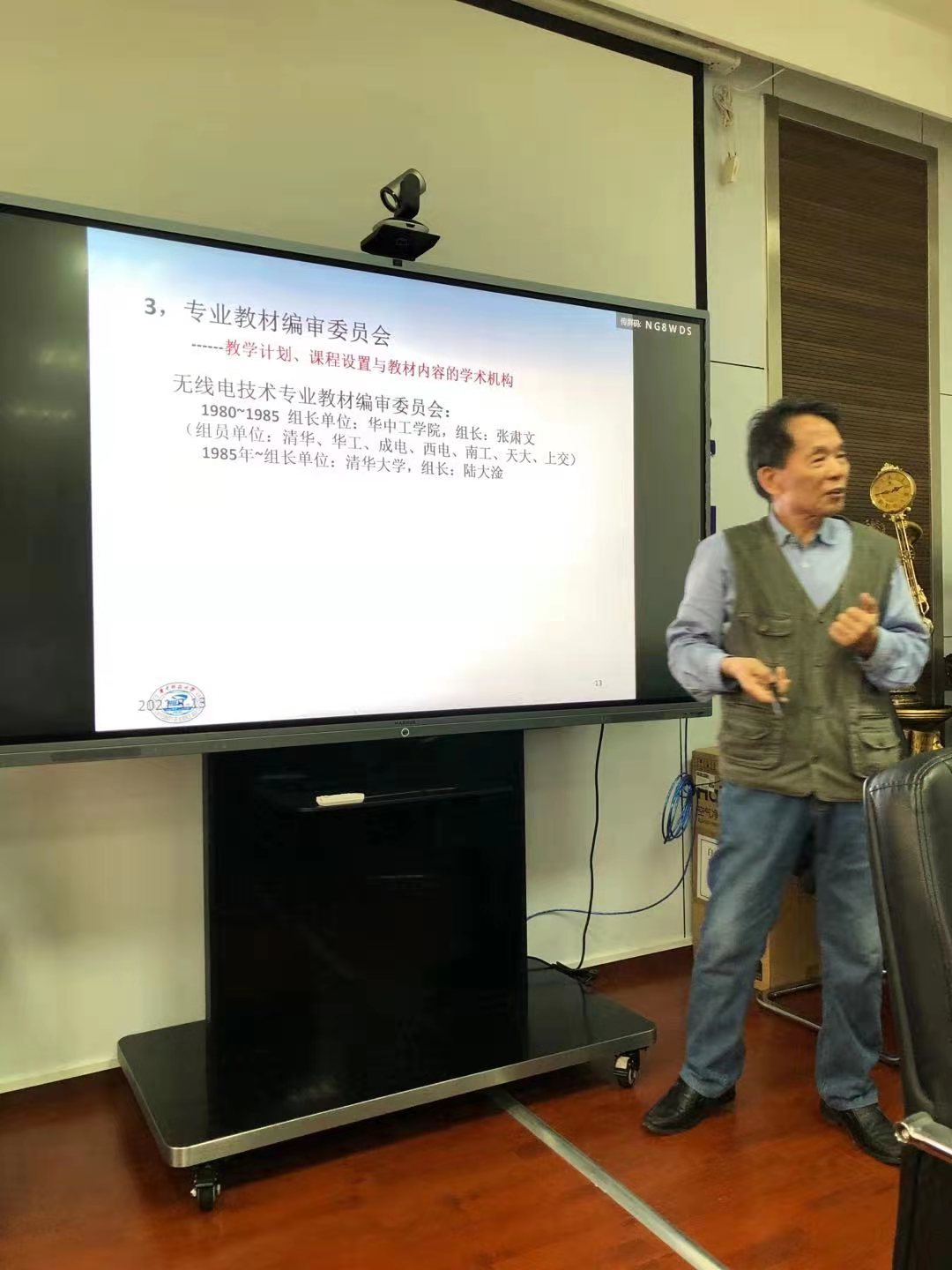 513日下午,857足球直播 举办院史教育专题报告会,邀请857足球直播 退休教授、原电子信息与工程系系主任黄载禄为青年教师主讲857足球直播 历史,857足球直播 党委书记郑小建主持报告会。