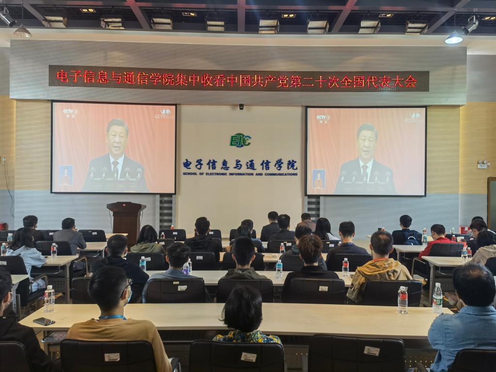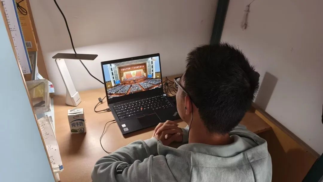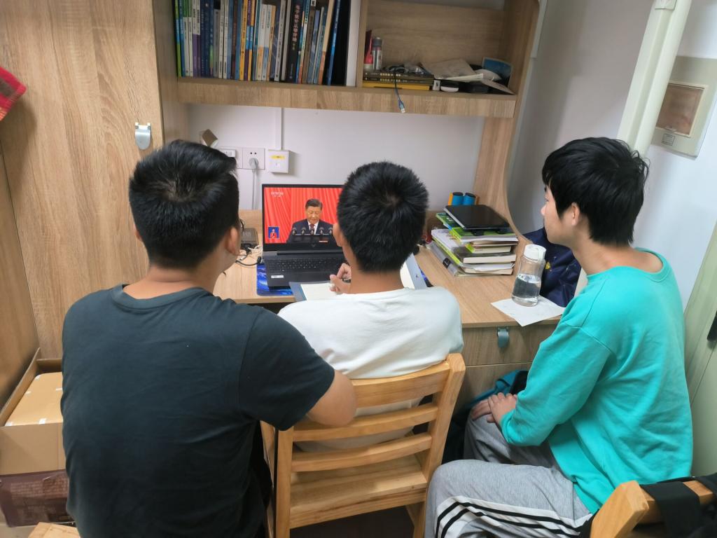 党委书记郑小建、党委副书记陈世英、党委委员、教师党支部书记、学生党支部书记和部分党员代表参加。此外,全院师生在学生寝室、实验室等以多种形式收听收看大会直播。