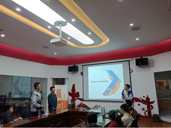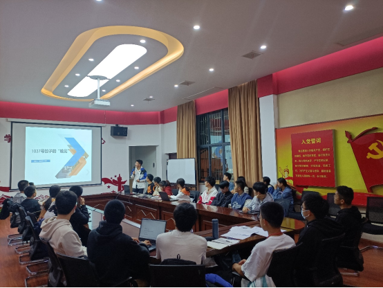 陆骋同学则以“红蓝白”为分享主题,情感真挚地为同学们讲述了代表家国情怀的“红色”和代表科研竞赛的“蓝色”含义,回顾了他在国旗仪仗队、校青马班、成为抗击新冠疫情志愿者、参加研究生支教团之际体会到的家国情怀与初心使命。他以本次获得第七届“互联网+”全国金奖的科研经历,告诉同学们在科研的道路上没有一帆风顺。最后,他祝愿同学们的大学生涯是由红色、蓝色和代表其他精彩生活的丰富颜色一起构成的一片光明的“白色”。