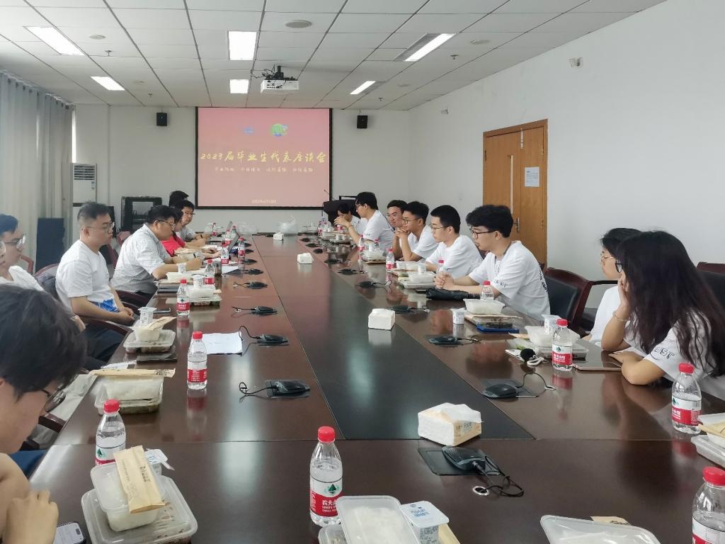 党委书记葛茜、院长邱才明、副院长杨铀、辅导员及16名本硕博毕业生代表参加本次座谈会,会议由党委副书记陈世英主持。