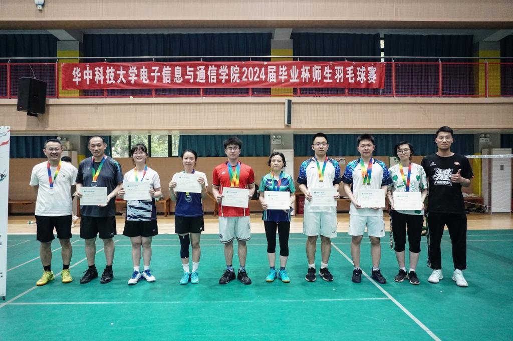本次比赛共吸引四十名师生参与,分为小组循环赛和淘汰赛两个阶段。在小组循环赛阶段,“男双”项目分为 A、B、C、D 四组共 18支队伍参赛,“混双”项目分为 E、F 两组共 11支队伍参赛,每组小组第一和第二晋级淘汰赛;在淘汰赛阶段,根据各小组出线情况,按照同组回避原则进行交叉比赛,决出本次比赛“男双”和“混双”的冠军、亚军、季军。
