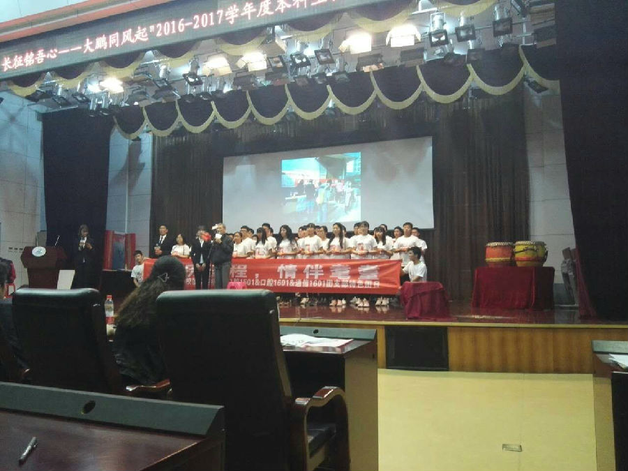 电信1601&汉语言1601&光电1603团支部的特团主题是“心若朝阳,无畏前征”,旨在通过他们的努力提高当代大学生对长征的认识水平,架起大学生和老兵之间沟通的桥梁。他们通过情景剧的方式真实还原了特团活动时的场景,完美再现了他们采访留学生、探访老兵并与与老兵亲切交流等情景,展现出了他们别具一格的朝阳之路。他们活动中采访到的一位尼日利亚留学生也来到了答辩现场分享他对于此次活动的意见和看法。最后,同学们合唱的《映山红》的优美旋律让人不禁回忆起那段不朽的峥嵘岁月,那段奠定了共和国的根基的漫漫征途。