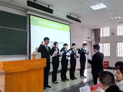 接下来,由李小猛老师为2016届分团委学生会主席团颁发聘书。
