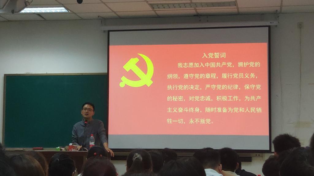 党委副书记陈世英进行动员讲话。陈世英书记主要从两个方面对学员提出了期许,一是从“不忘初心、牢记使命”主题教育成果出发,激励学员勿忘过去优秀的品质,奋勇前行,谱写大学时代的新华章;二是从党员责任意识、党员身份意识、党员先进性等多方面刻画出一名合格党员的形象,教导学员多关心身边的同学,对身边的同学负责,争做一名合格党员。