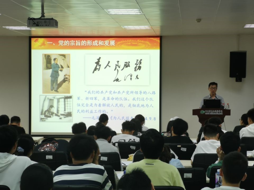 5月9日晚,培训班集中学习最后两讲在南一楼西203报告厅如期举行。首先,由孙禄老师给学员们传授以《中国共产党的宗旨》为题的党课,孙老师从党史讲起,引出了党的宗旨的形成和发展,接着结合疫情中的部分事例,讲述了党的宗旨的内涵和意义,并强调践行党的宗旨的必要性。他强调,大家要培养服务意识,做到全心全意为人民服务,为身边同学服务。紧接着,吕洪良老师以入党誓词中拥护党的纲领为切入点,向学员们讲解了党的纲领。从什么是党的纲领、坚持党的最高纲领,坚定共产主义理想、坚持党的最低纲领,坚定走中国特色社会主义道路为讲授提纲,采用做比较、举例子、摆事实等方式,向学员们做党的纲领做了深刻剖析。课程最后,吕老师以“让理想照亮现实,用理想引领未来!”为结束语,呼吁学员们要有理想,要为理想而奋斗,更要为实现中华民族伟大复兴的中国梦而不懈奋斗!