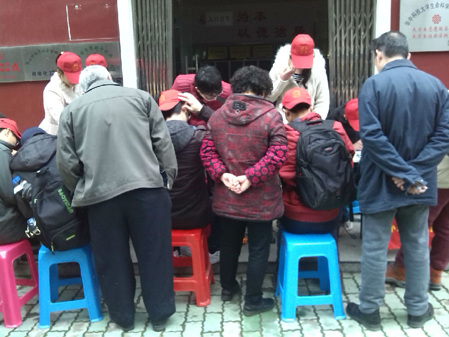 3月8日下午,在接近活动尾声时,关山口的李诚能老人(其女为华中大在职教职工)前来,希望派遣一名队员去往他家中修理两件体积较大的电器。任务交由小红帽队员姜鑫(现副队)前往。由于时间关系,队员姜鑫留下联系方式,不久后抽空前往其家中完成修理其吸氧机,老人对此表达了深深的谢意。