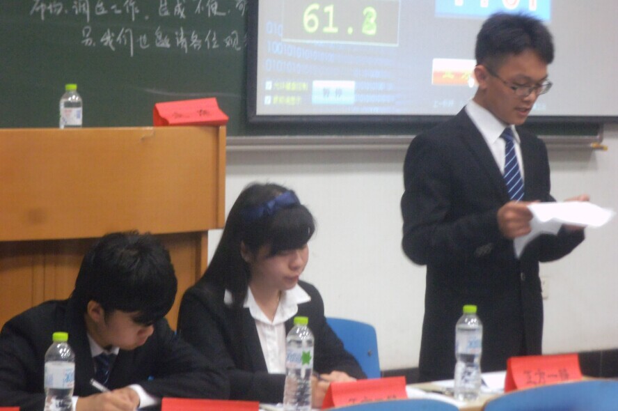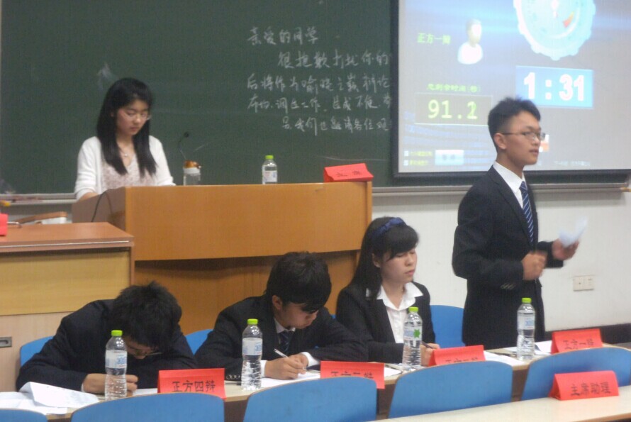 持“弊大于利”观点。我方辩手有:一辩曾含,二辩韩贝佳,三辩孙若寒,四辩李瑞达。团支部书记张扬老师和13级辅导员高骥也亲临现场加油。