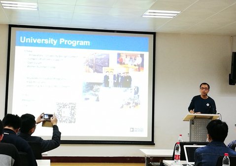 接着,ARM公司的雷磊为我们做了赛事讲解,包括获奖证书、奖项设置、参赛要求、赛事项目等。接下来他介绍了ARM互联及互联网的关系,以及ARM公司的产品、物联网设备开发、mbed平台、无人机等方面的发展与改进。主要详细介绍了mbed平台的原理和使用,他还建议参赛同学使用类似mbed此类经过验证的安全可靠的智能互联平台进行开发。最后预祝参赛同学取得优异成绩。 并解答了几个同学提出的问题,期间,曾喻江老师协助对同学提出的问题进行了补充说明。