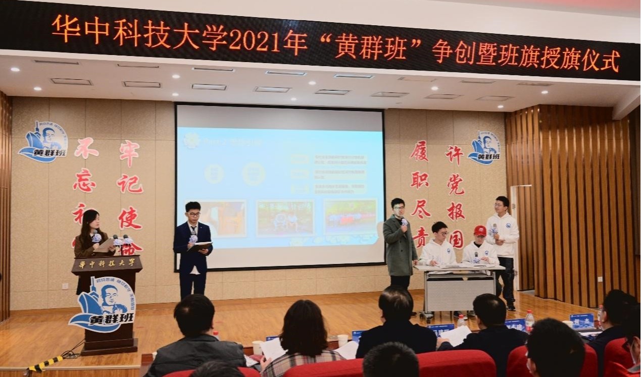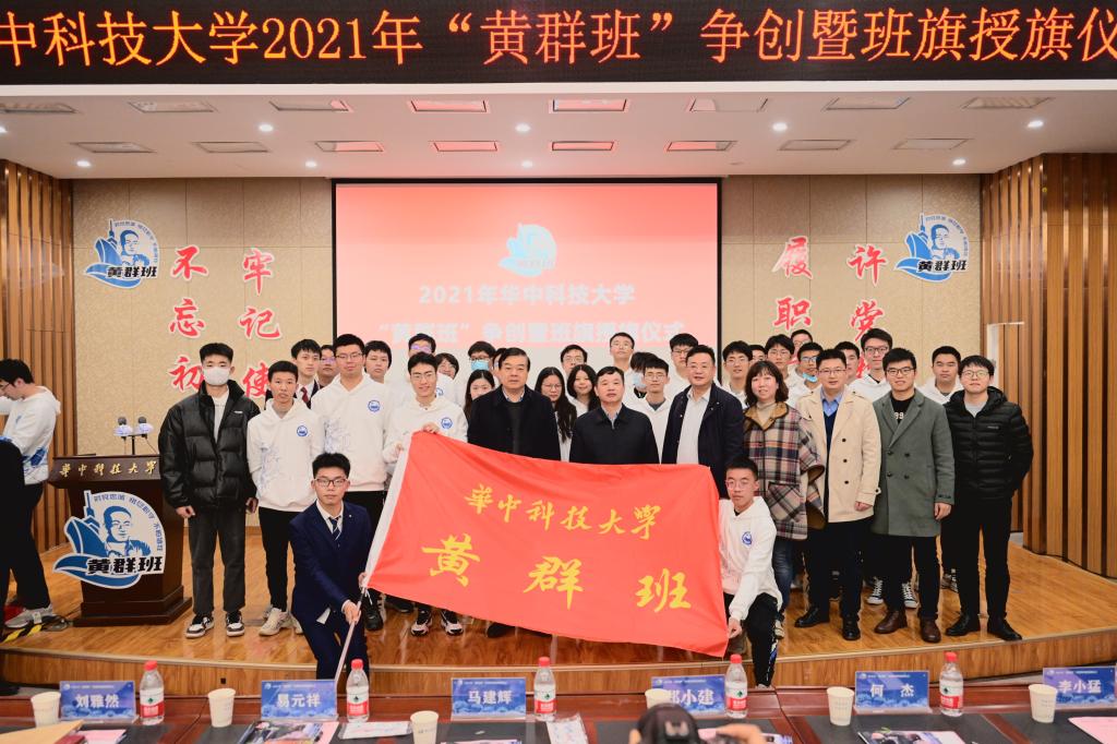 全部八个班级展示完毕后,现场工作人员对评委老师的打分进行了统计,综合参评材料分数算出了八个班级的最终得分,电信提高2001班取得了88.79的好成绩,成功获评2021年华中科技大学 “黄群班”荣誉称号,华中科技大学党委副书记马建辉为班级授旗。教师班主任杨鹏副教授提醒同学们:“争创成功只是一个开始,希望同学们在接下来的三年里继续奋斗,努力创建出更优秀的班集体!”在之后的学习生活中,电信提高2001班全体同学将继续学习黄群精神,恪守学生本分,勇担时代责任,努力练好人生和事业的基本功。做有理想、有追求,有担当、有作为,有品质、有修养的新时代大学生。
