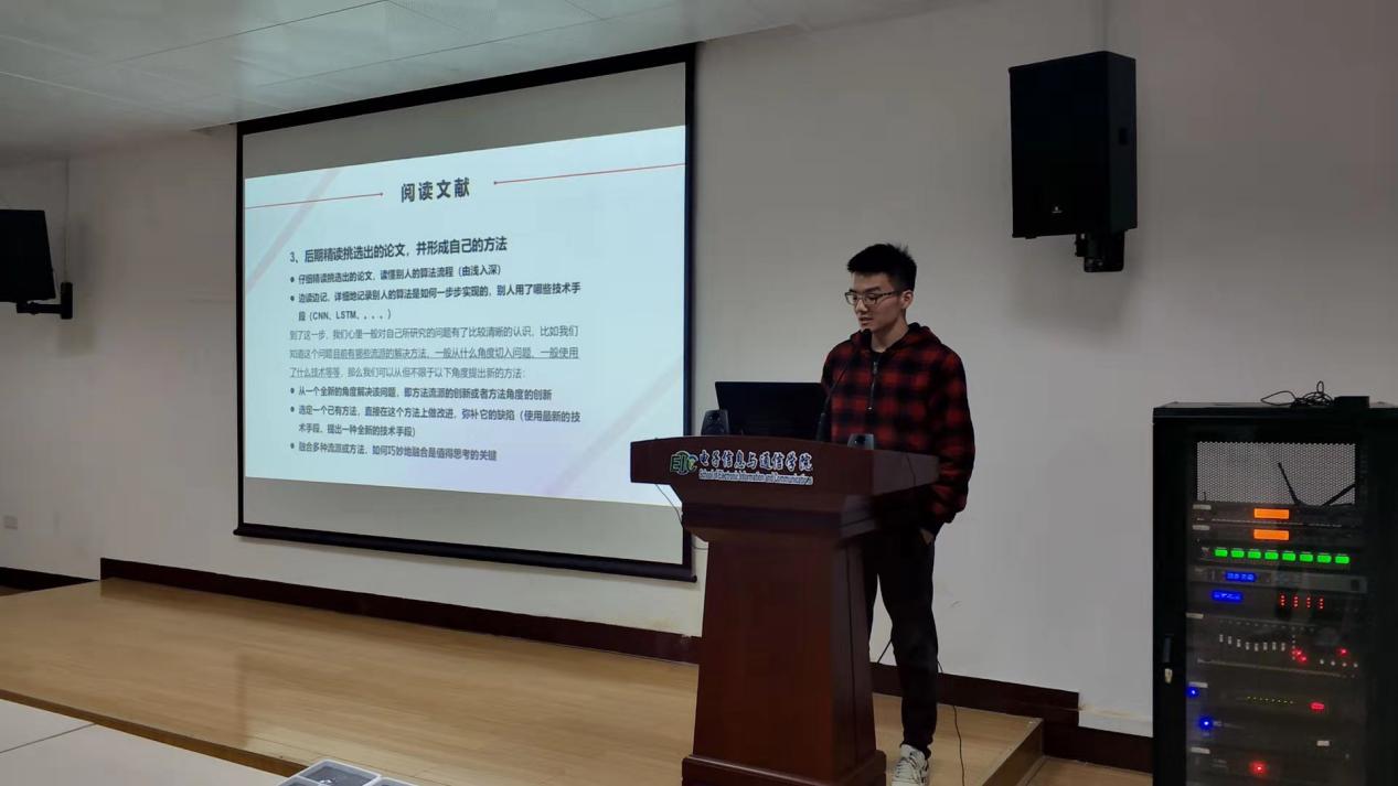 国奖获得者18级硕士生汪畅、17级硕士生王刚和17级硕士生朱臻进行科研经验分享,对19级研究生同学进行科研指导。