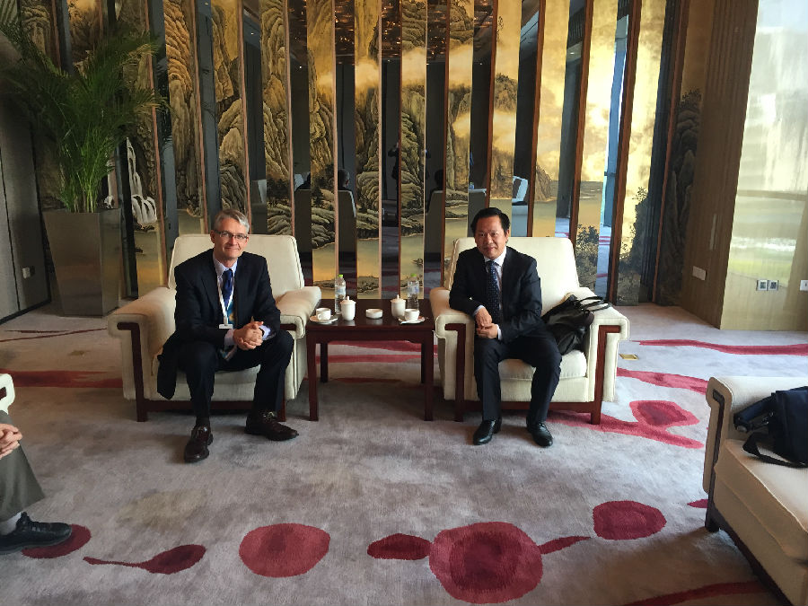 院长陈建国教授会见了来访我校的美国国立癌症中心(National Cancer Institute) 副主任(Deputy Director)Warren Kibbe 博士、美国国际儿童医院首席信息官Simon Lin博士。