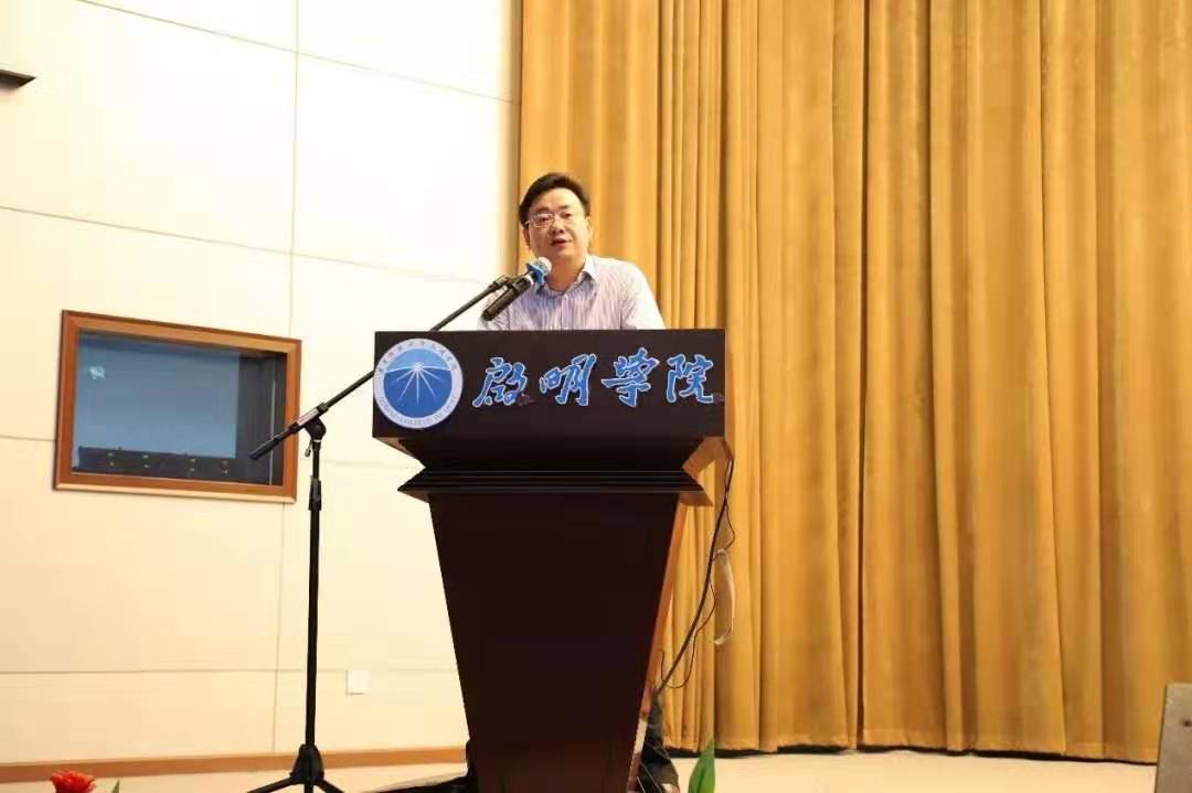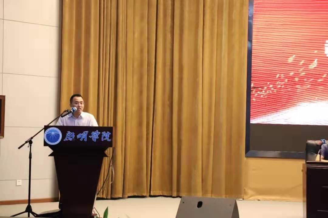 教师代表李渝舟老师幽默风趣地与新生们分享了他的三点感悟——保持乐观豁达、吃苦耐劳的品质;结交图书馆与运动场两个朋友,钻研专业、强身健体;锻炼创新与实践能力,敢于质疑、敢于探索。他表示,希望新同学们能够寻找到自己人生的答案,对自己的人生无怨无悔。