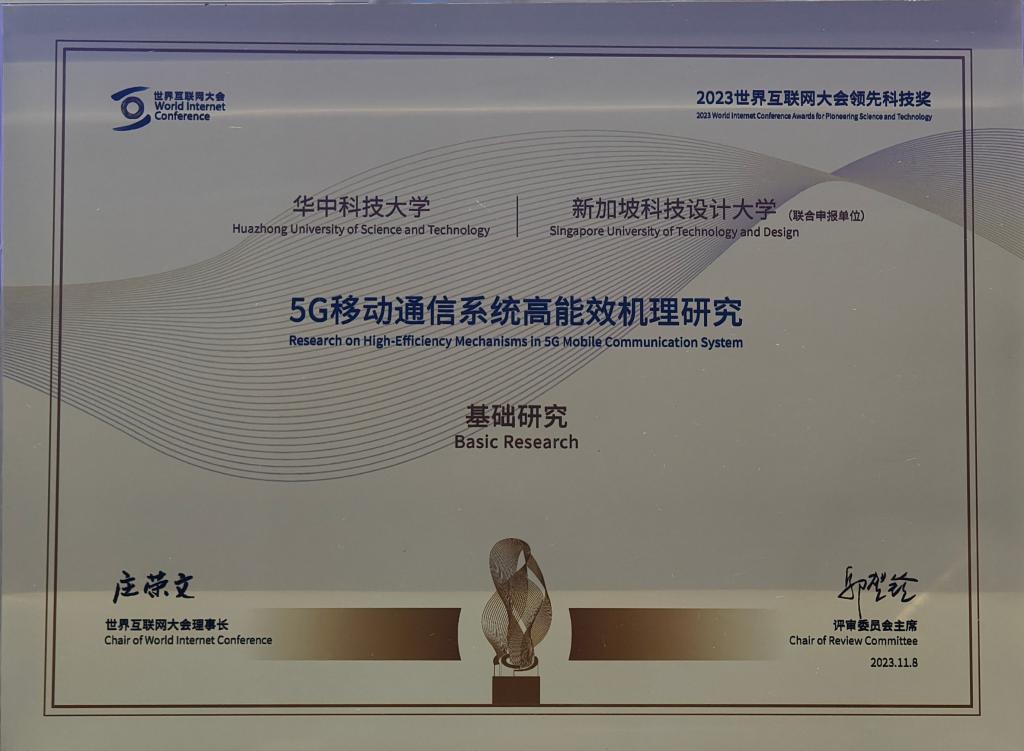 项目“5G移动通信系统高能效机理研究”获世界互联网大会领先科技奖,系华中科技大学首次荣获该奖项。857足球直播
