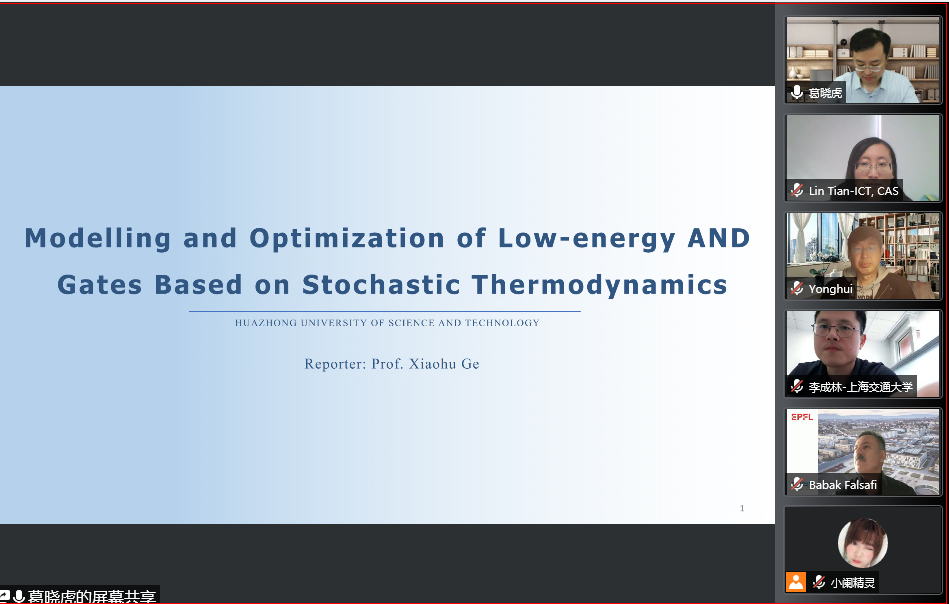 华中科技大学葛晓虎教授作题为Modelling and Optimization of Low-energy Logic Gates Based on Stochastic Thermodynamics(基于随机热力学的低能逻辑门建模与优化)的报告,基于随机热力学构建了与门的单能级晶体管模型,提出了基于输入状态转换的与门能耗模型,并采用最优运算顺序对三输入相与电路的能耗进行优化。