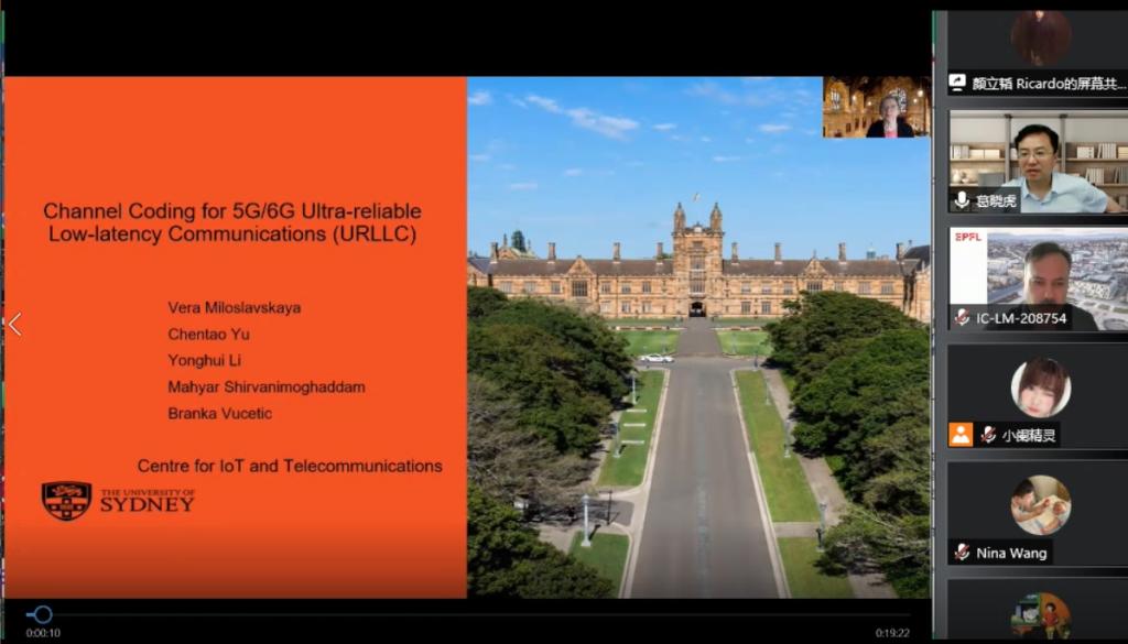 悉尼大学Branka教授作题为Channel Coding for 5G/6G Uitra-reliable Low-latency Communications (URLLC)(用于 5G/6G 超可靠低时延通信 (URLLC) 的信道编码)的报告,提出了新的极化码设计方案,证明了采用序列译码的短极化码具有最佳的可靠性和复杂度。