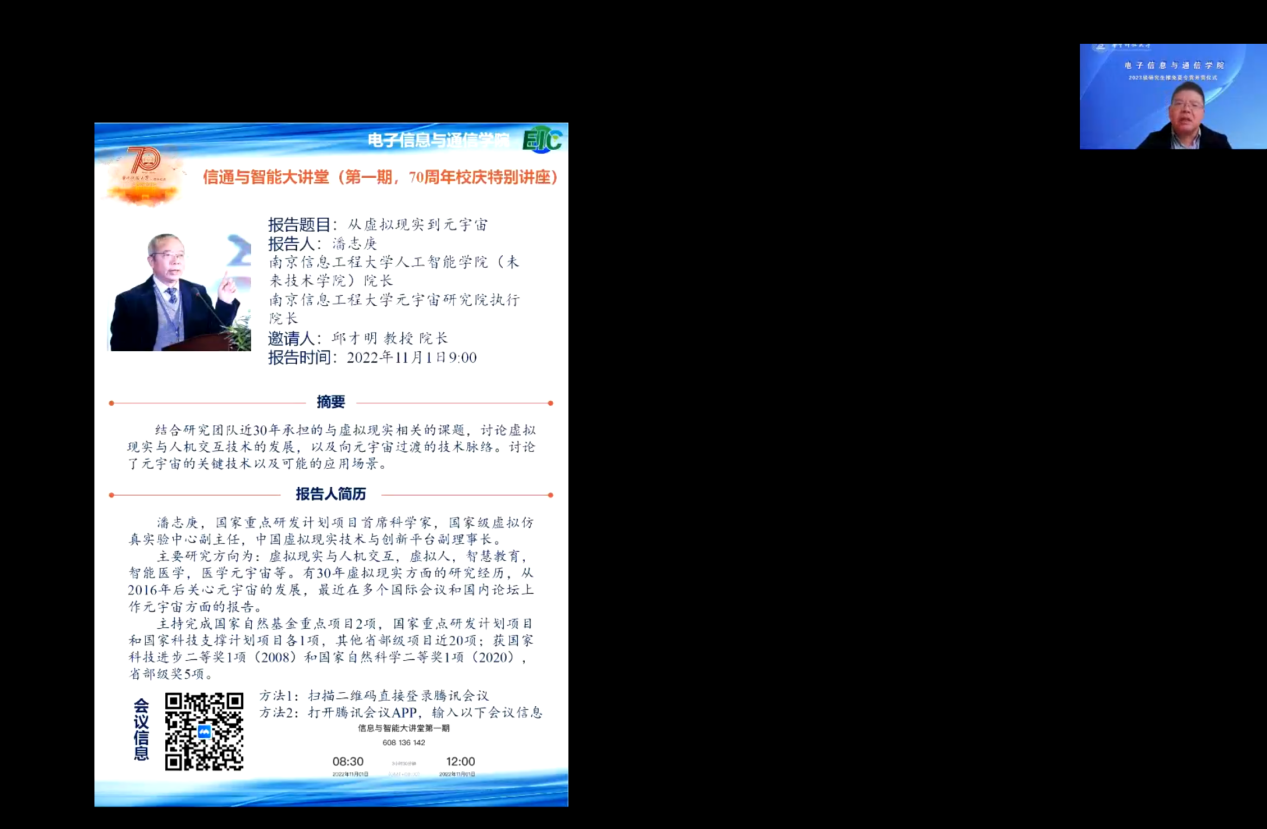 )院长潘志庚教授作为嘉宾,以线上方式带来“从虚拟现实到元宇宙”的精彩报告。857足球直播