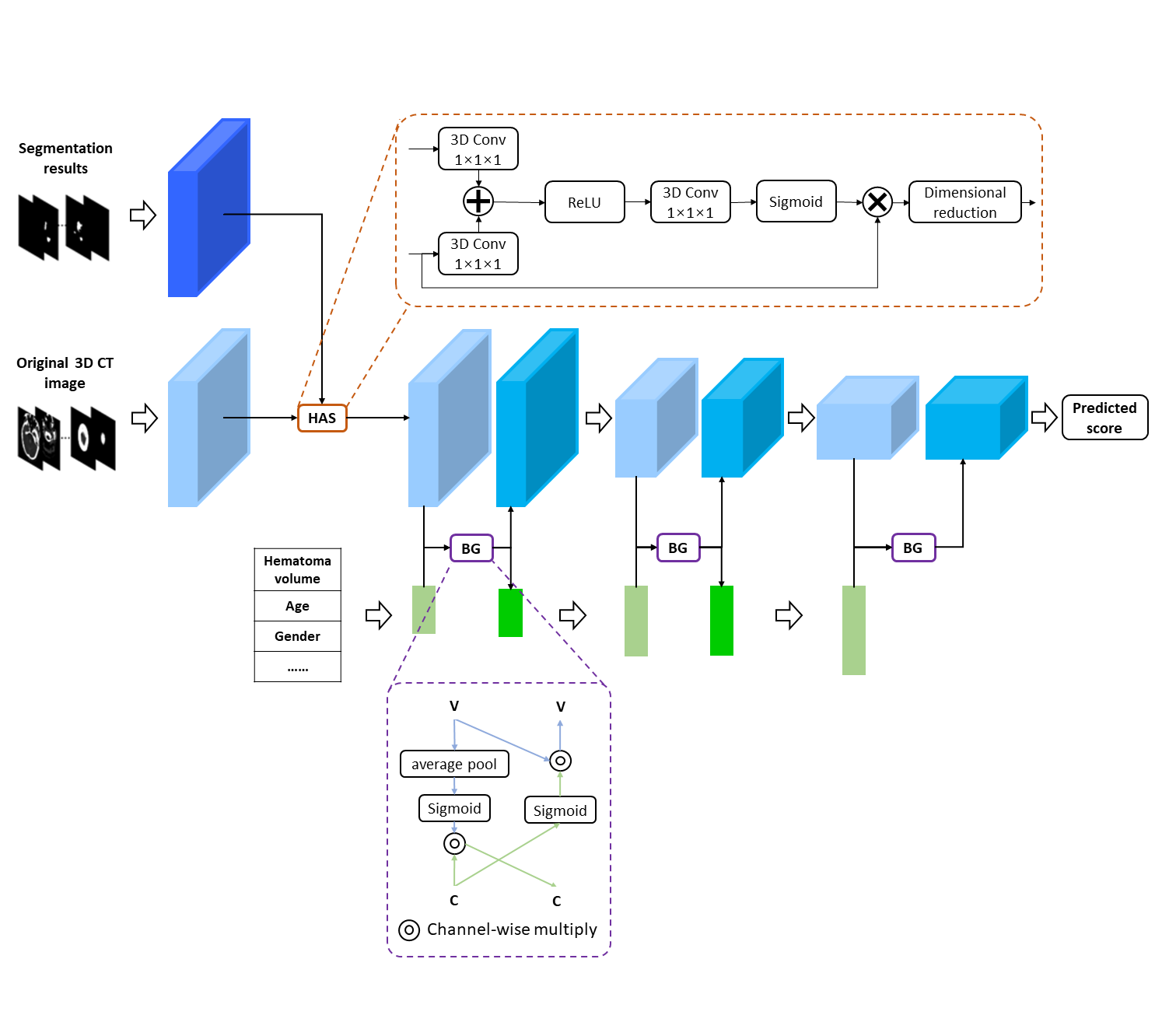 脑血肿扩增预测对脑出血患者的预后至关重要。基于深度学习的血肿扩张预测方法当前存在模型复杂度高和单模态医学成像方法的性能局限。针对这两个挑战,团队提出了一种双向引导的半3D网络,利用多模态数据进行精确的血肿扩张预测。该方法在预测血肿扩张方面具有良好的性能,并且轻量化的设计使其更适用于处理小规模数据,具有在临床场景中辅助医生进行诊断的潜力。