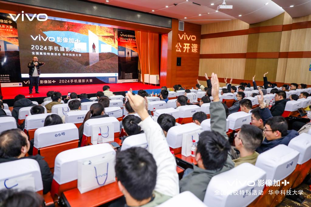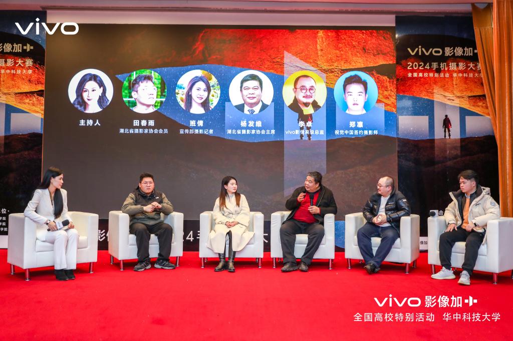 12月28日,2024vivo影像加+全国高校特别活动走进华中科技大学。湖北省摄影家协会主席杨发维、vivo影像产品高级总监李卓、华中科技大学党委宣传部摄影记者班倩、湖北省摄影家协会会员田春雨、视觉中国签约摄影师郑凛5位嘉宾出席活动并带来精彩分享,与同学们共同奔赴一场光影的视听盛宴,探索手机摄影的未来新生态。