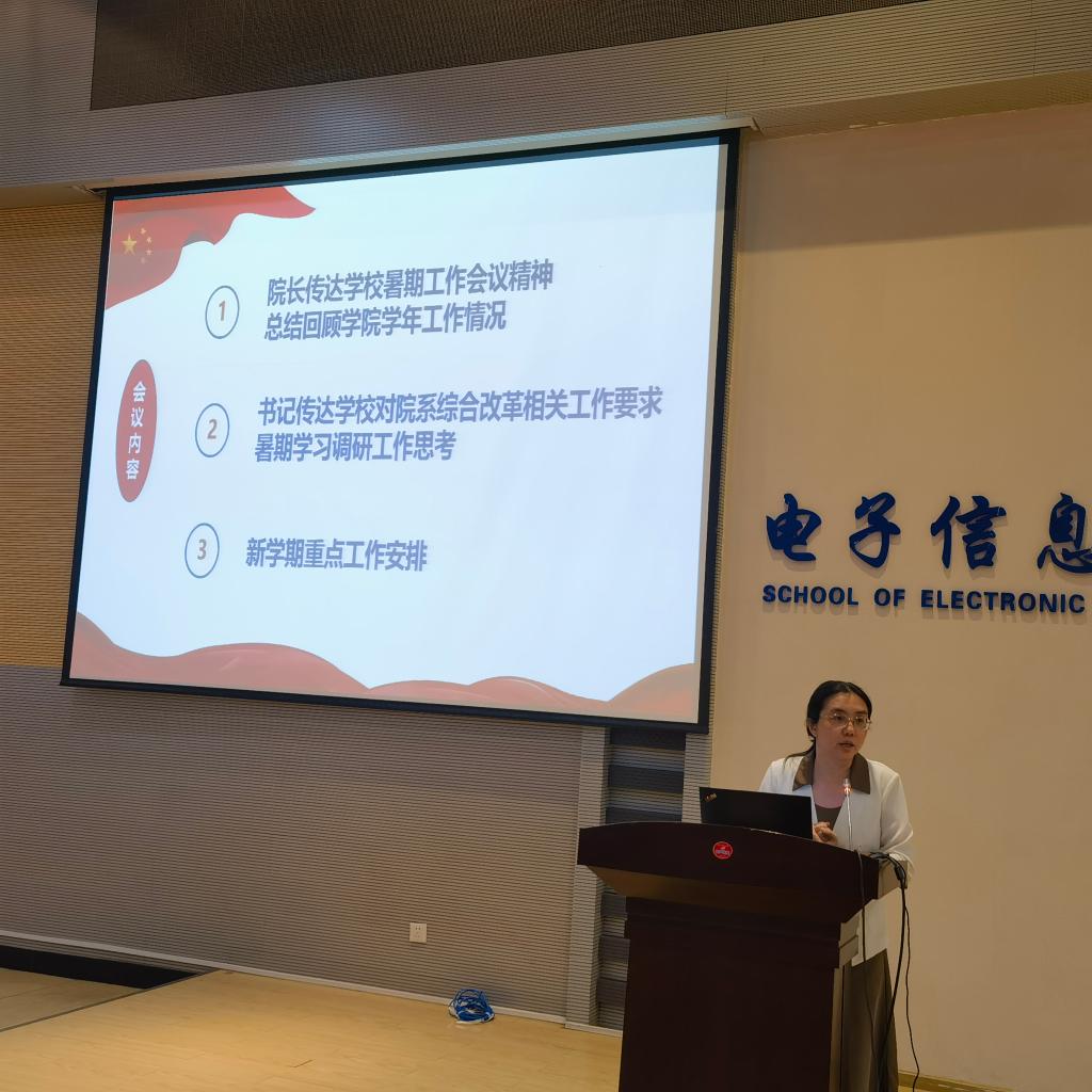 葛茜传达校党委书记张广军所作“重塑目标 勇担使命 奋力书写中国式现代化的华科大篇章”和校长尤政所作“深化教育综合改革 激发创新活力 全面推进教育科技人才一体化”的主题报告等暑期工作会议报告精神,传达学校对院系综合改革相关要求,表示857足球直播