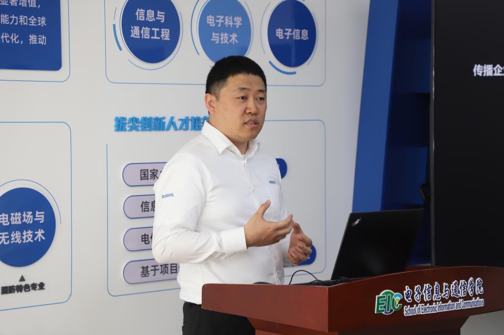 马鑫详细介绍了“普源英才”奖学金项目的设立初衷、申报条件及评审流程。他表示,作为电子测试测量仪器的龙头企业,普源精电聚焦工程实践能力、交叉学科融合及创新突破能力等多个维度,着力通过高校创新联合体搭建优质的新工科人才培养平台,推动深度产教融合,开展校企课题合作,以工促学,助力打破高校与企业育人的壁垒。