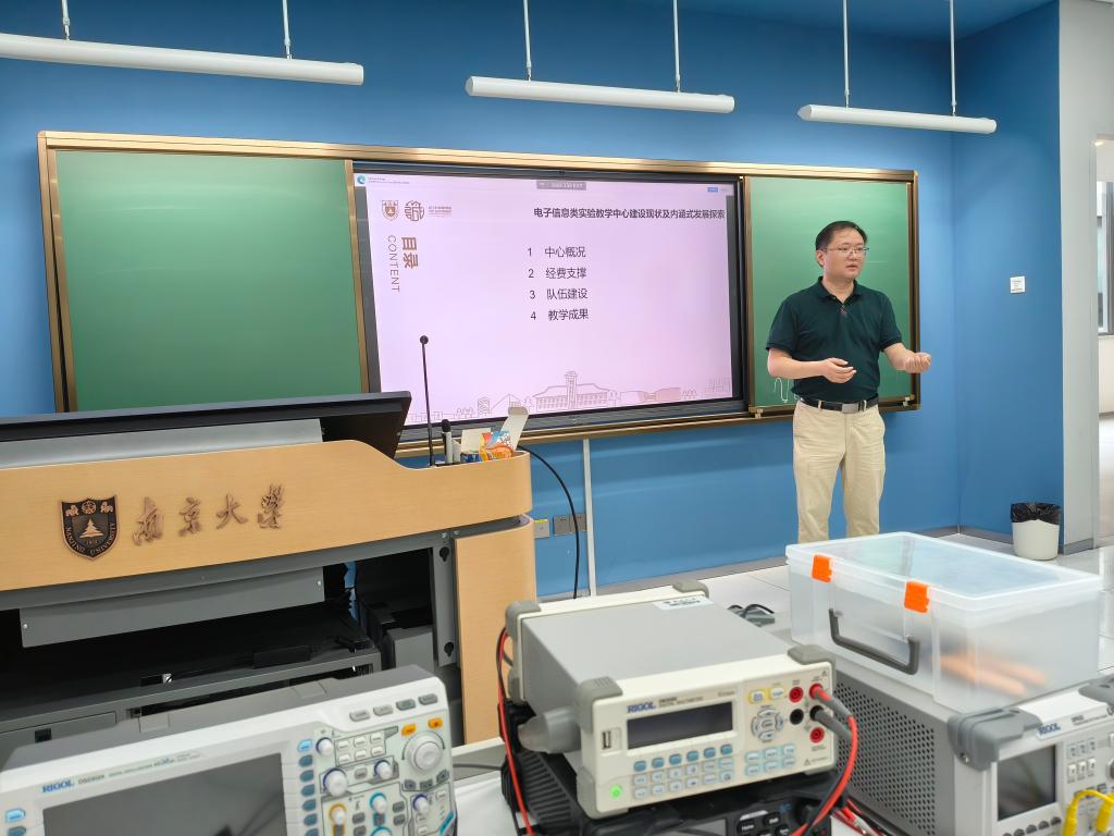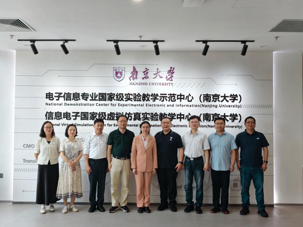 南京大学电子信息专业国家级实验教学示范中心常务副主任张志俭对葛茜一行表示热烈欢迎,全面介绍了示范中心的基本情况与年度重点工作,阐述了中心秉承“科教融合、产教融合、理实融合”的建设理念,结合实验室建设与实验课程建设的联动关系,系统解读了契合南京大学人才培养定位的实践教学体系,详细说明了当前正在实施的一些工作举措和成效。