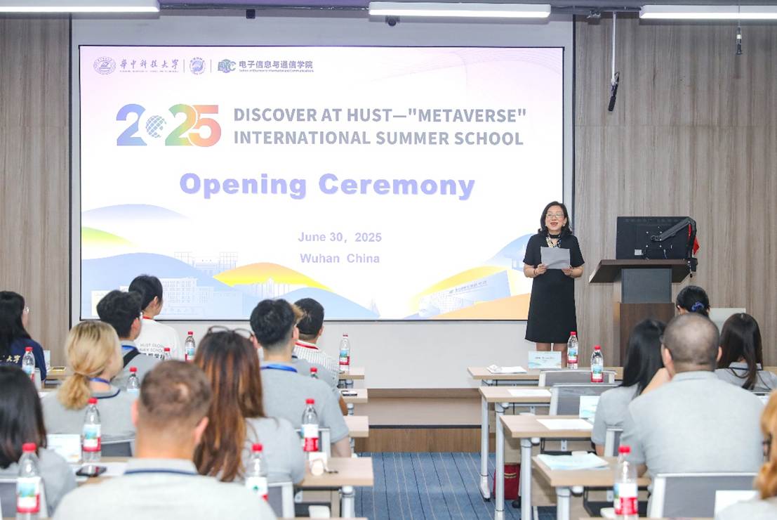 承办的“2025问学华中大·元宇宙暑期学校”开班仪式在华中科技大学南一楼西203教室举行。来自全球14个国家的56名学员齐聚武汉光谷,开启为期两周的“元宇宙”科技探索与文化交融之旅。
